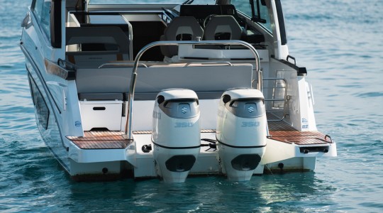 · Motor foraborda: gràcies al fet que els motors foraborda s'eleven, l'embarcació es pot apropar més a la costa i té l'opció de descobrir cales més recòndites amb menys calat. A més, com que no s'ha d'encaixar el motor intraborda, disposa de més capacitat d'emmagatzematge sota coberta.