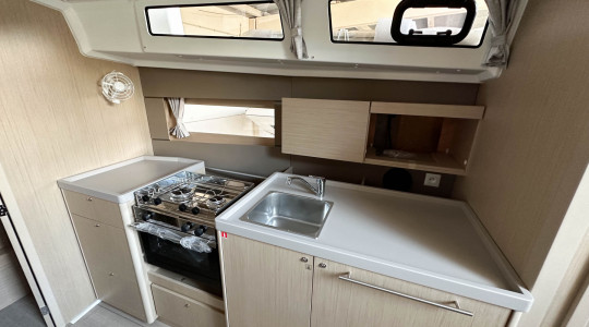 Amb més de 23 metres d’eslora i aspecte esportiu, aquest veler és el primer de menys de 80 peus que integra una zona independent per la tripulació.