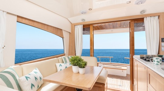També, sota el concepte Sight-seeing Yachting, la gamma Menorquín permet viure la navegació en 360º gaudint de les vistes des del flybridge amb un extra de comoditat i amplitud.