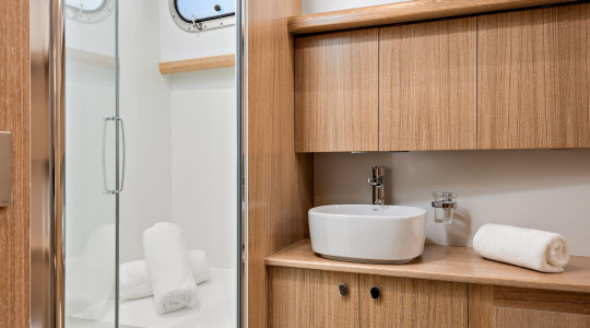 - Habitabilitat: La seva confortable navegació i els espais voluminosos tant a l'exterior com a l'interior, conviden tots els membres de la família i els amics a gaudir d'una experiència còmoda i relaxant al mar.