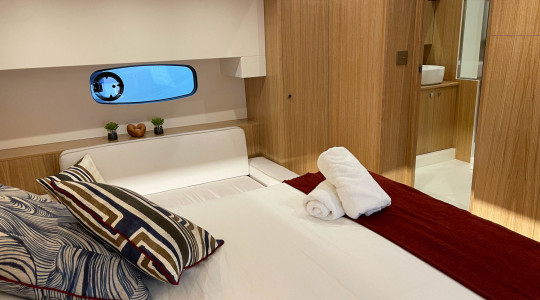 · Navegació òptima: els 480 CV de potència de cadascun dels seus 2 motors permeten assolir els 19 nusos en creuer, proporcionant estabilitat i autonomia per a llargues travesses.