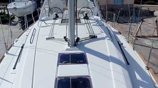 Amb una distribució de 3 cabines i 2 banys, vela major i gènova enrotllables, winches elèctrics per a escotes de gènova i una quilla de calat llarg, aquesta unitat està equipada amb tot el necessari per gaudir d’una navegació segura i plaentera. També compta amb plataforma de bany elèctrica, bimini complet amb tancament, coixins de banyera Dolce 51, propulsor de proa retràctil, WC elèctrics i convertidor de 12V/230V.