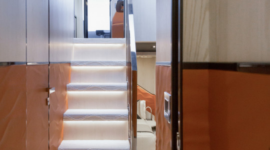 In its sportiest models, Astondoa maintains the quality and high-end comfort that define the brand. With this in mind, the interiors stand out for the quality of the materials used ( noble woods, fine leathers and marble) and the ability to design the areas based on the owner's lifestyle.