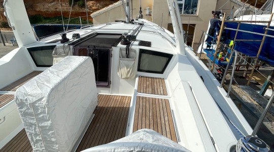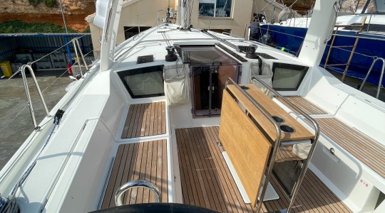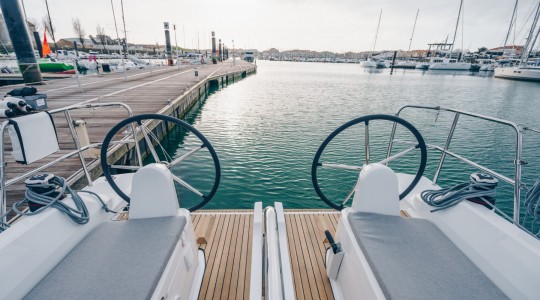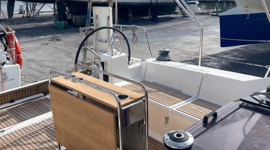 · Double steering wheel option: the owner can choose between a steering position more for regatta, with a single central tiller, or a position with a double rudder. The layout of this second option offers more space in the cockpit and is perfect for those who prefer to also enjoy good times cruising in company.