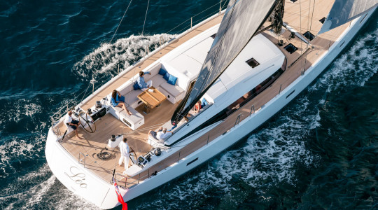 The yacht that sails halfway between performance and blue water. At 23 metres and with a sporty look, this is the first yacht under 80 feet to integrate a self-contained crew area.