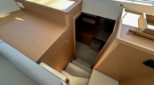 The saloon and kitchen are accessible from the cockpit, acting as a bridge between the interior and exterior spaces to meet any need, regardless of where we are.