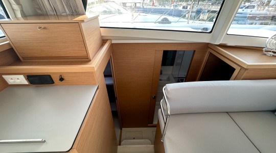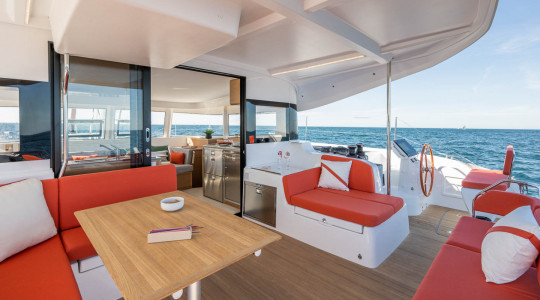 On the deck of this 14-meter boat, everything is designed for fun both during handling and in life on board and in the relationship with the sea.