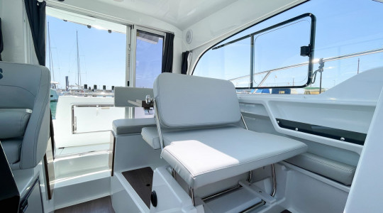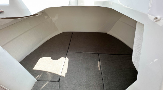 Powered by a Suzuki DF115BTGX engine, equipped with Garmin electronics, portable VHF, electric windlass, bathing platform and marine toilet with holding tank, this boat offers all the essentials for comfortable enjoyment in a manageable and trailerable length. Its forward cabin features a double berth, ventilation and hatch, while the cockpit is spacious with a stern seat and outdoor table.