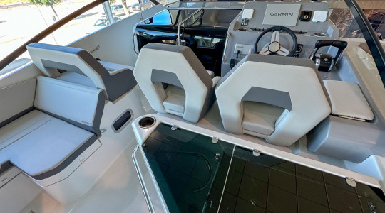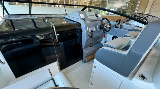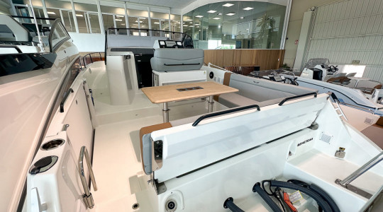 Sporty yet family-friendly, fast yet safe, this new stock day boat strikes the perfect balance between accessibility, performance, and onboard enjoyment. Ideal for outings as a couple or full days at sea with family or friends, it stands out for its smart design, comfort, and dynamic handling.