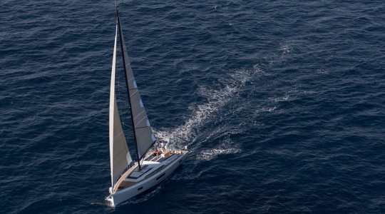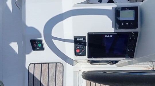 With 2 cabins, 1 head, a classic mainsail and furling genoa, this model stands out for its excellent interior volume, modern design and functional exterior spaces. The cockpit and bathing platform are finished in teak, and the configuration includes twin helm wheels, bimini, B&G electronics and a bow thruster for added onboard convenience.