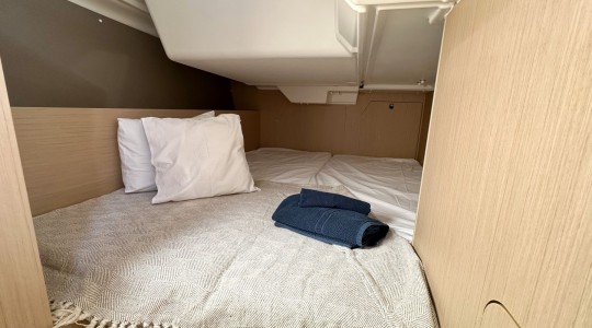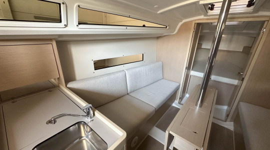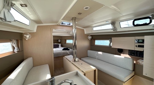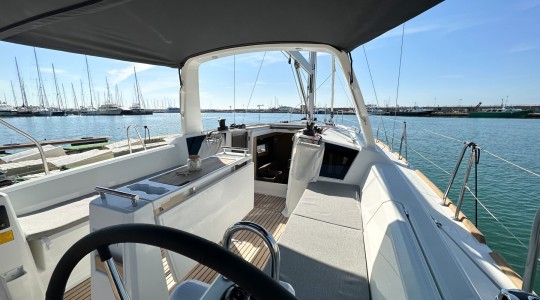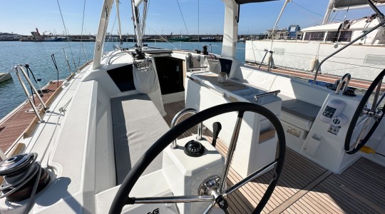 Con 2 cabinas, 1 baño, mayor clásica y génova enrollable, este modelo destaca por su buena habitabilidad interior, diseño moderno y espacios exteriores funcionales. La bañera y la plataforma de baño están revestidas en teka, y su configuración incluye doble rueda de timón, bimini, electrónica B&G y propulsor de proa para mayor comodidad a bordo.