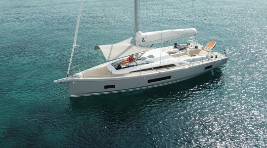 With 3 cabins, 1 head and a functional interior layout, this unit features furling mainsail and genoa, modern upholstery, LED lighting, generous interior volume and multiple smart solutions for life on board. The cockpit and bathing platform are finished in IRO-DECK, adding both elegance and durability on deck.