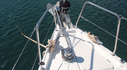 It features 3 cabins and 2 bathrooms, and comes with a wide range of extras to ensure comfort on board and easy handling: furling mainsail, bow thruster, electric toilet, electric bathing platform, additional water tank, teak cockpit floor, convertible salon berth, and AIS system.