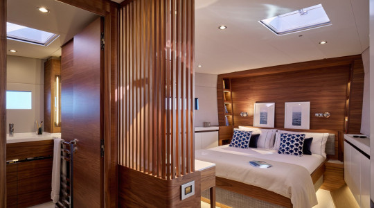 Owner's cabin equipped with central bed facing aft and a desk on the rear bulkhead Layout "B"