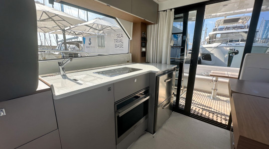 Por su parte, la cubierta inferior ofrece una distribución de 4 cabinas con 3 baños completos, donde el camarote del armador cobra especial protagonismo gracias a una superficie de 18 m2.