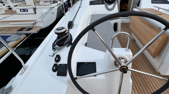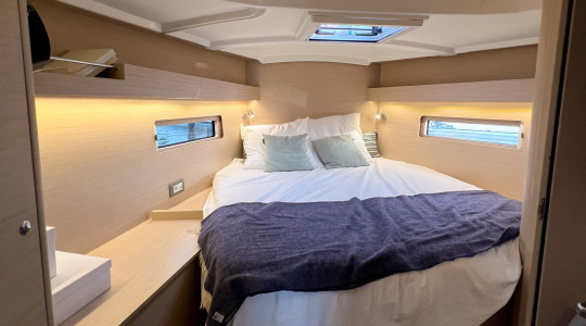 Con una distribución de 3 cabinas y 2 baños, mayor y génova enrollables, winches eléctricos para escotas de génova y quilla de calado largo, esta unidad está equipada con todo lo necesario para una experiencia de navegación segura y placentera. Dispone además de plataforma de baño eléctrica, bimini completo con cierre, cojines de bañera Dolce 51, propulsor de proa retráctil, WC eléctricos y convertidor 12V/230V.