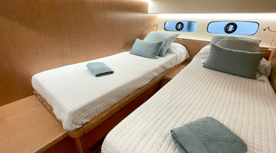Con una configuración de 2 cabinas y 1 baño, este modelo es ideal tanto para escapadas de fin de semana como para largas travesías en pareja o familia.