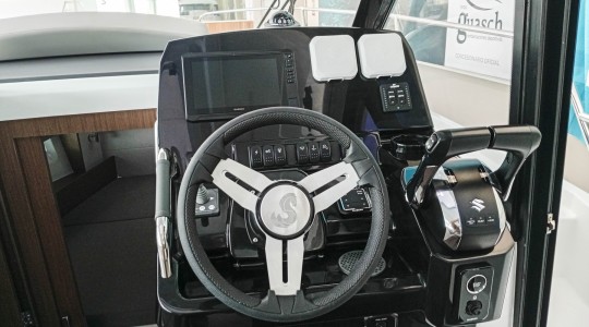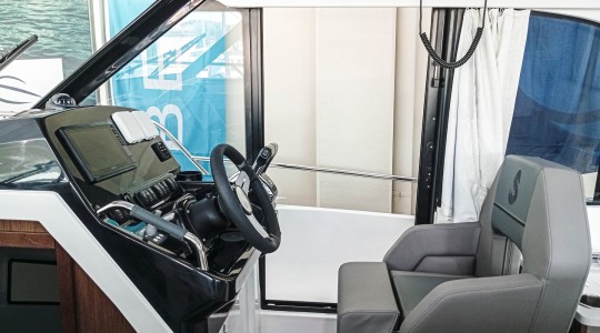 · Ouverture et Protection : L'une des innovations les plus notables et fonctionnelles de ce bateau est la possibilité de pouvoir fermer électriquement tout le cockpit avec une baie vitrée escamotable pour fermer l’arrière du cockpit et ainsi pouvoir profiter du confort à bord tout au long de l'année.