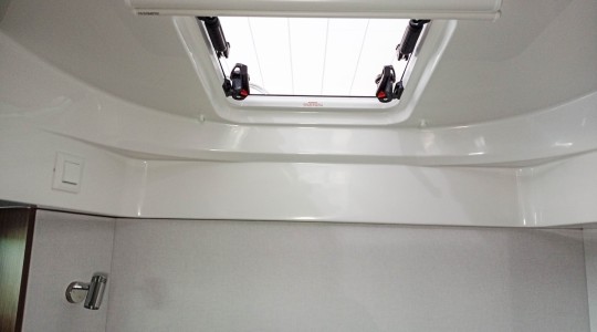 Beneteau propose une distribution en deux ou trois cabines, puisque le salon peut être remplacé par une troisième cabine avec deux lits superposés. Les cabines sont spacieuses et confortables, la cabine propriétaire dispose d'une salle de bain privée complète avec douche séparée. Et la cabine invités, avec deux lits en forme de ciseaux qui peuvent être réunis pour former un lit double, dispose également d'une salle de bain complète avec une douche séparée qui communique à la fois avec la cabine et le salon.