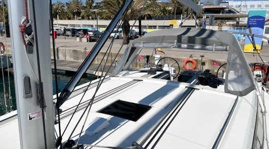 L'étrave en carbone libère le cockpit de l'écoute de grand-voile, ce qui permet de profiter du soleil et de la vue sur la mer.