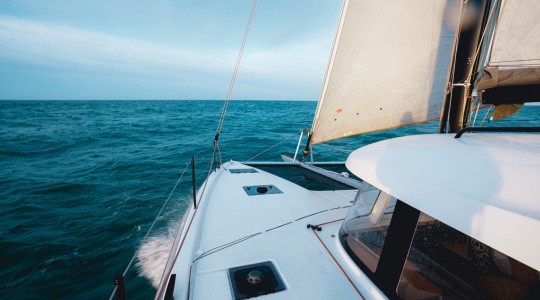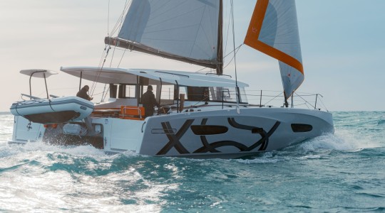 ADN Excess dans toute sa splendeur, un catamaran aux lignes élégantes et agréable à piloter. Il est le fruit d'une architecture innovante, née de la collaboration avec le studio VPLV, expert en navigation transocéanique ; il sort de la zone de confort pour vous offrir plus de sensations de celles que on pourrait attendre d'un bateau de croisière.