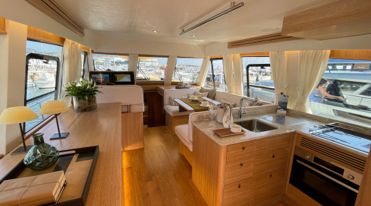· Navigation optimale : les 480 CV de puissance de chacun de ses 2 moteurs lui permettent d'atteindre 19 nœuds en croisière, en apportant stabilité et autonomie pour les longs trajets.