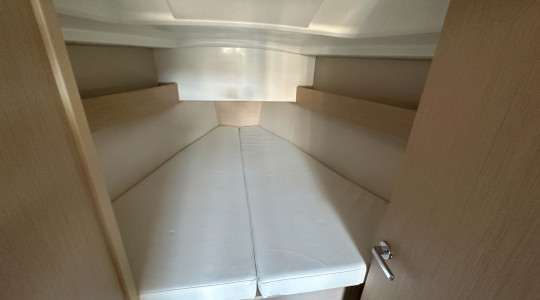Il dispose de 3 cabines et 2 salles d’eau, ainsi que de nombreux équipements pour garantir le confort à bord et une navigation facile : grand-voile enroulable, propulseur d’étrave, toilettes électriques, plateforme de bain à ouverture électrique, réservoir d’eau supplémentaire, cockpit en teck, couchette convertible dans le salon et système AIS.
